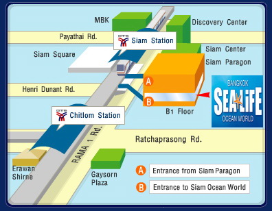 Sea Life Bangkok (formerly Siam Ocean World) is located on levels B1-B2 of Siam Paragon department store in the heart of Bangkok.It's also in proximity to the city center's most vibrant shopping district, Siam, which includes the Siam Discovery Centre and Siam Square.