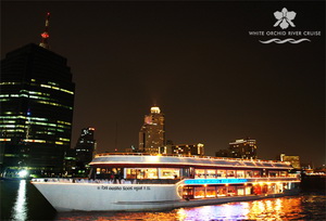 - ITINERARY:Welcome aboard the White orchid river cruise and spend an exciting and memorable 2 hours-long evening cruising and dining along the Chaophraya River enchanting magical atmosphere which is something you shouldn't miss.
