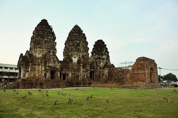 Visit the Prang Sam Yod (Sacred Three-Spired Pagoda), ruins of Wat Phra Sri Ratana Maha Dhat, as well as the Monkey Temple.
